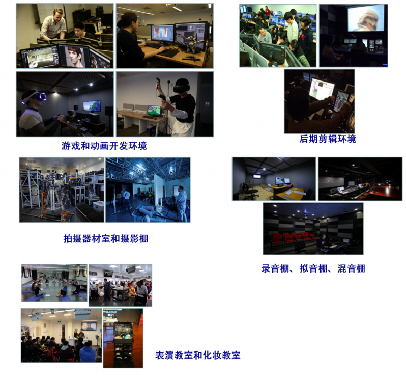 大学英语和雅思课程;专业课程(电影制作、3D 动画和视觉特效、声音设计、造型设计(化妆设计)、电影制作(影视表演方向)、游戏设计) |