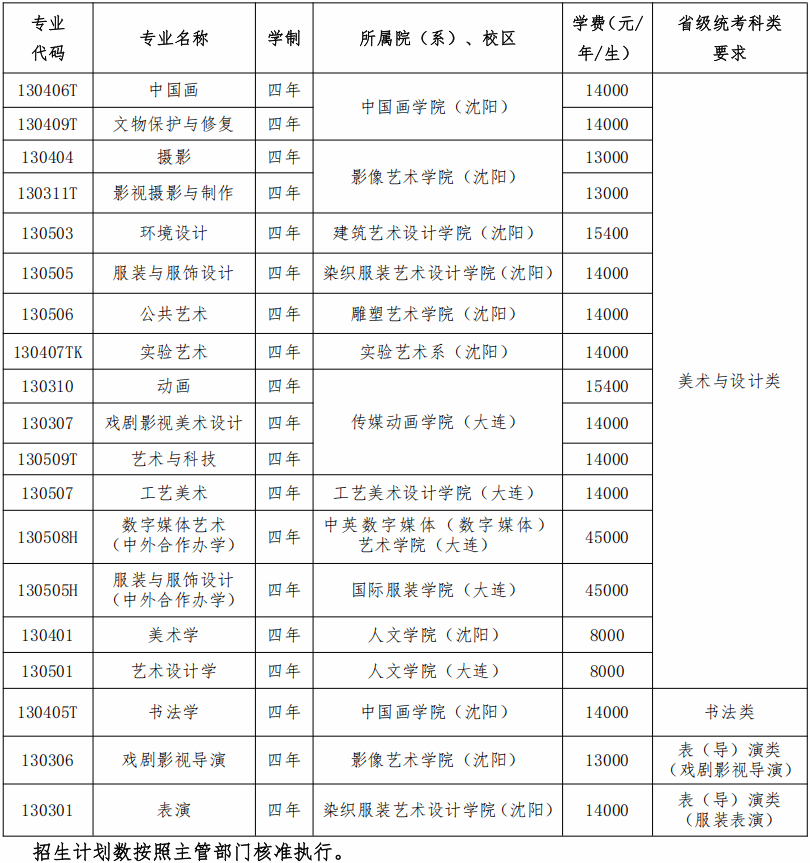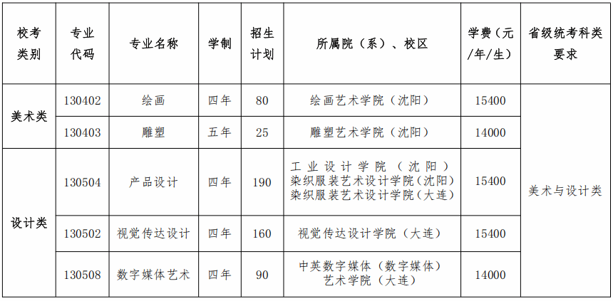 (一)艺术类校考专业面向全国招生,不编制分省计划,实行文理科(历史学/物理学科类)兼招。