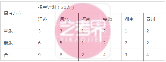 音乐学办学层次为本科,学制4年,2025年招生计划30人,含声乐和器乐,分省招生计划如下表所示。