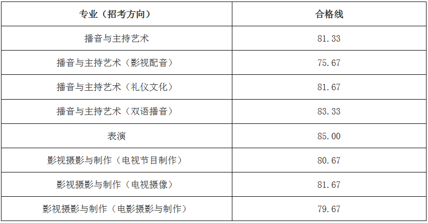 浙江传媒学院2026年艺术类本科校考初试合格线